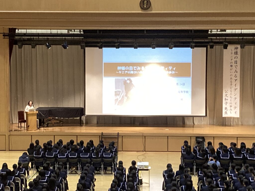 10月24日(金)、ケニアで障がいのある子どもたちやその家族を支援する施設『シロアムの園』を運営されている小児科医・公文和子先生をお招きし、全校生徒を対象にご講演をいただきました。