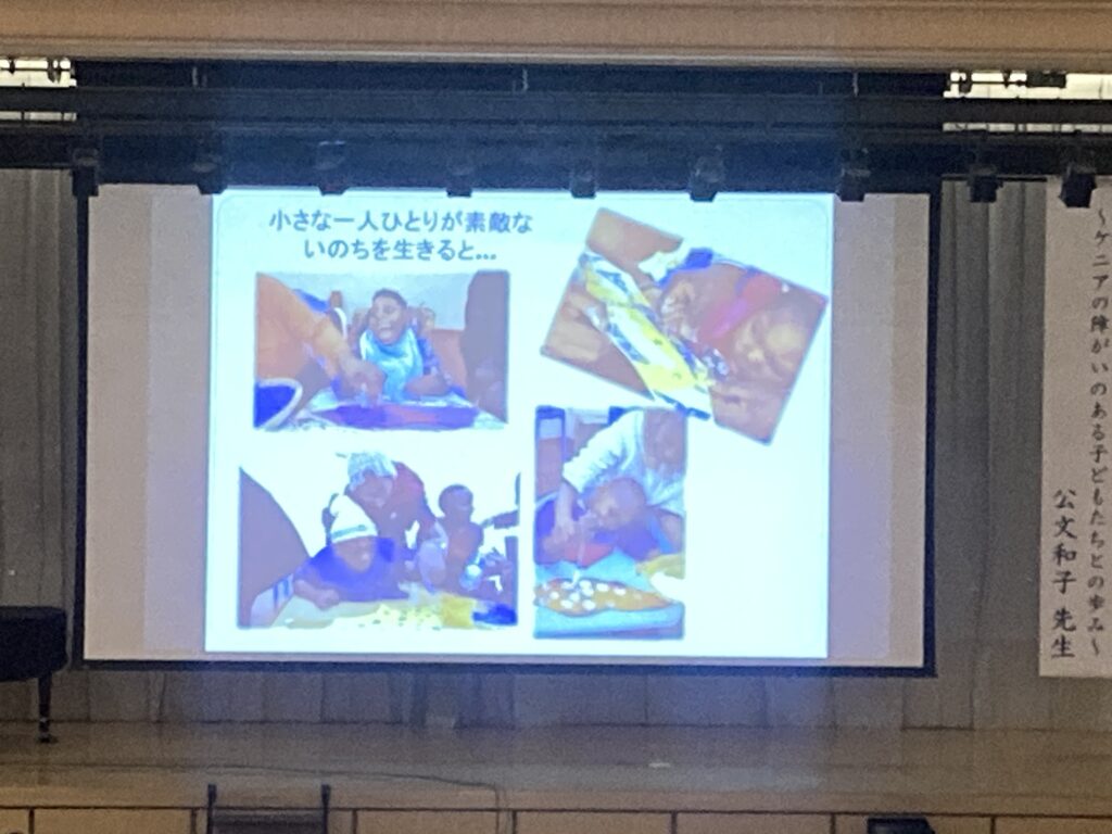 講演では、現地の子どもたちの姿や支援の様子を写真や映像を交えて紹介され、「どの子もその子らしく幸せに生きるために、どう関わるかを考えることが大切」と語られました。