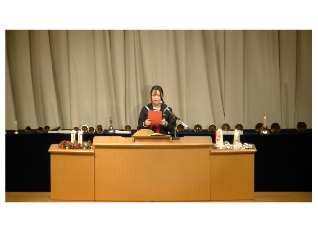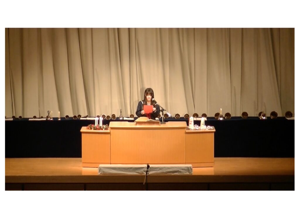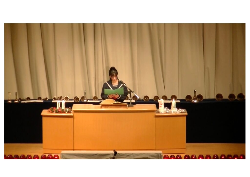 各学年がささげた『学年の歌』、そして全員による『ハレルヤ・コーラス』は、体育館アリーナいっぱいに美しく響き渡り、会場全体が祈りと喜びに包まれる、今年を締めくくるにふさわしい感動的なひとときとなりました。