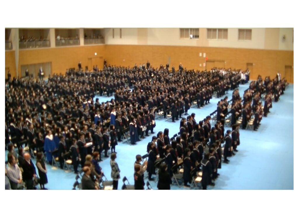 保護者の皆さまをはじめ、卒業生を含む300名を超える方々が参列され、体育館は二階席までいっぱいとなりました。