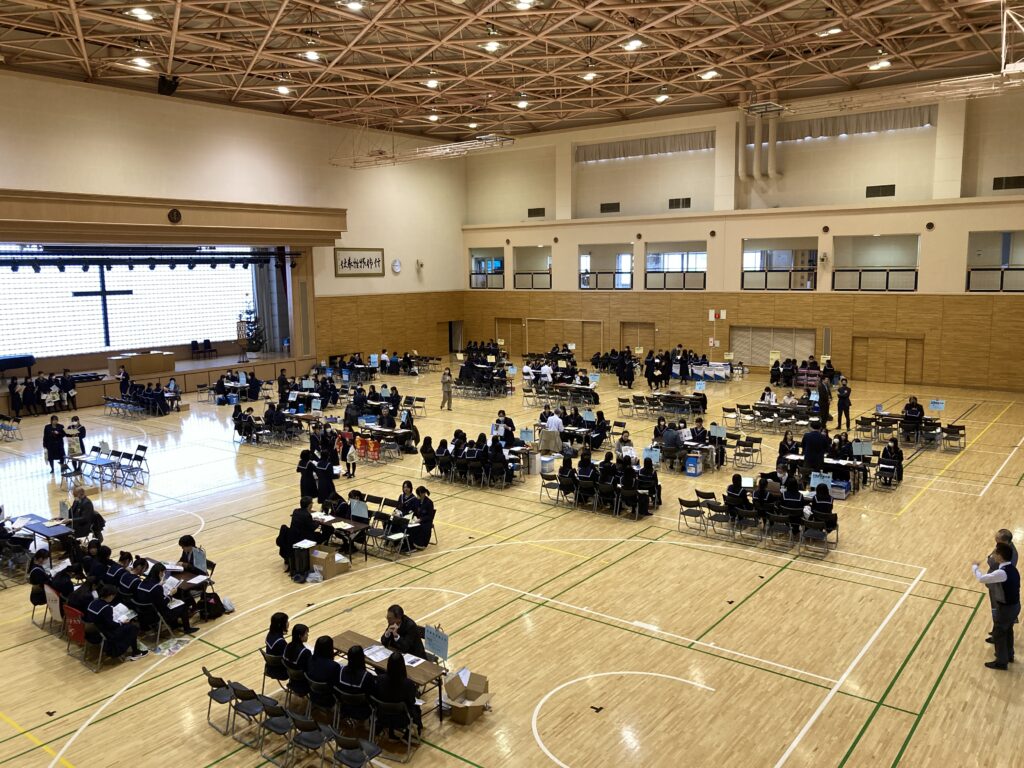 昨日の地震の影響で、参加予定だった学校のうち十数校が来校できない状況となってしまいましたが、急遽1年生と2年生を半分ずつに分けて開催する形で実施いたしました。