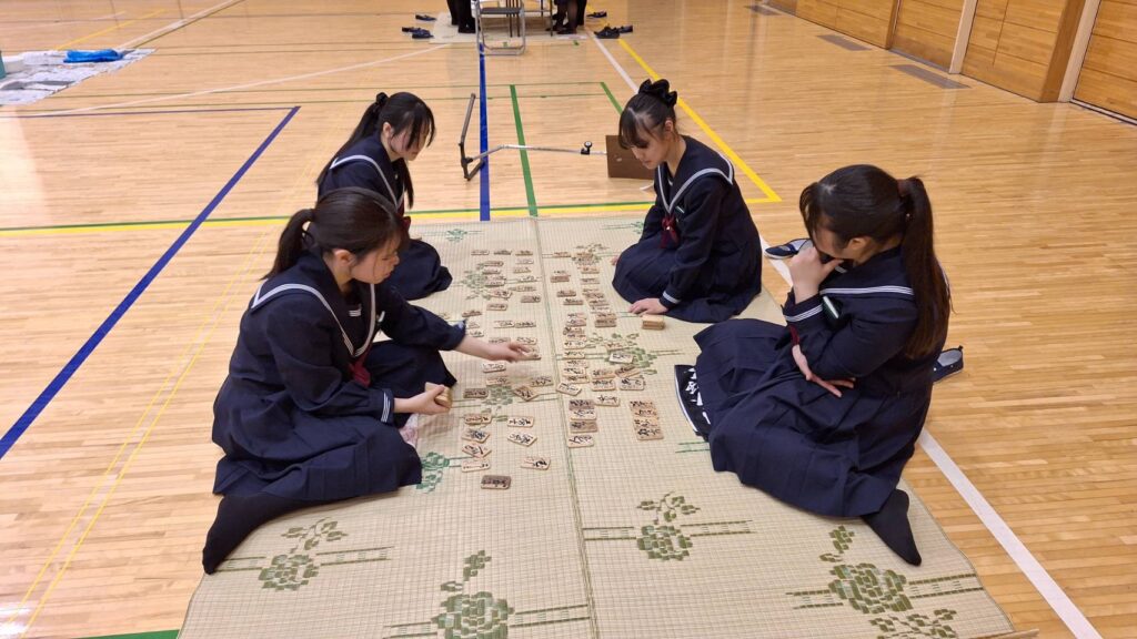 当日は札が読まれるたびに会場から歓声が上がり、生徒たちは集中して札を取り合いながら、各クラスともチームワークを発揮して試合に臨んでいました。